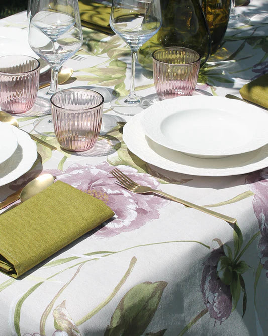 Tovaglia in cotone loneta con fantasia peonie